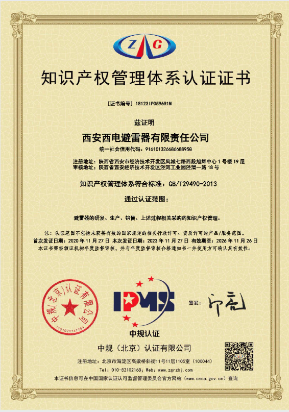 11月23日,米兰(中国)通过了知识产权管理体系再认证审核,并获得中规(北京)认证有限公司颁发的知识产权管理体系认证证书。