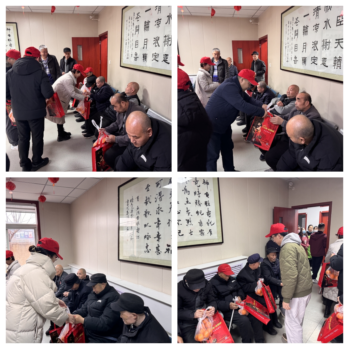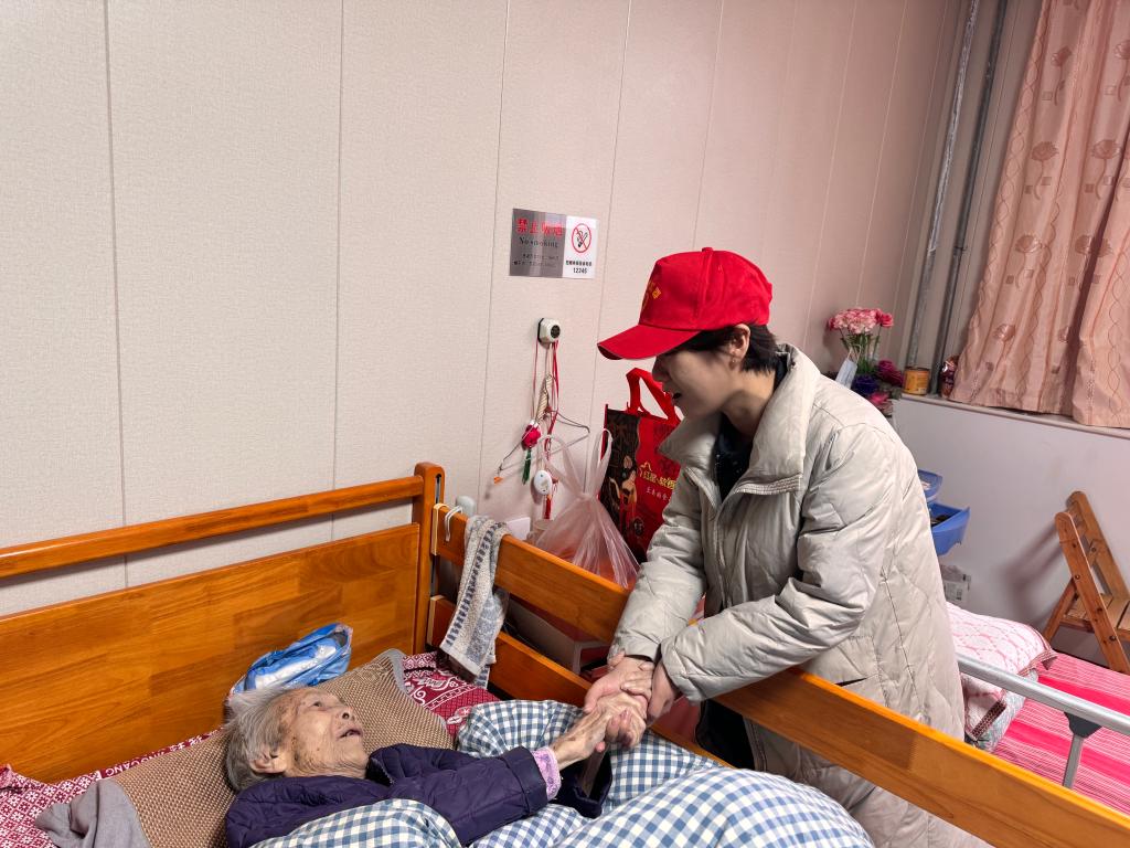 最后,志愿服务队前往护理病房,慰问无法下床的老人。曹龙书记向志愿服务队介绍了供养中心一位102岁的高龄老人。老人已过期颐之年,但精神矍铄,思维敏捷。张苗亲切地与老人交流,为他送上春节祝福,并赠送了点心和水果等慰问品。老人拉着她的手,激动地说:“谢谢你们来看我,祝你们新年快乐!”