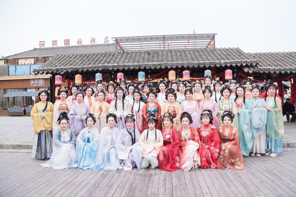 她们换下工装,着汉服、梳妆、簪花,成为三月靓丽的风景线。