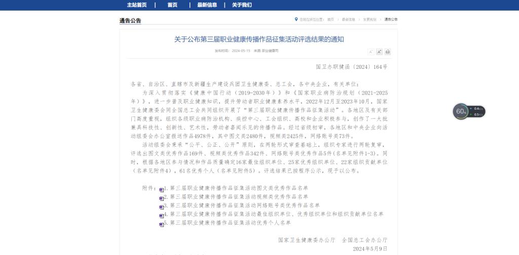 国家卫生健康委会同全国总工会共同组织开展的“第三届职业健康传播作品征集活动”旨在贯彻落实《健康中国行动(2019-2030年)》和《国家职业病防治规划(2021-2025年)》,对进一步普及职业健康知识,提升劳动者职业健康素养水平有着积极意义。
