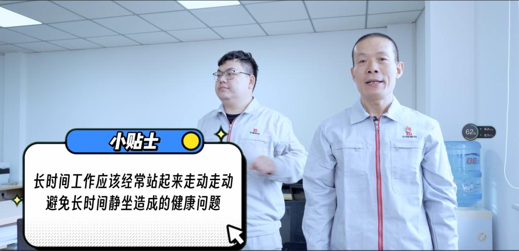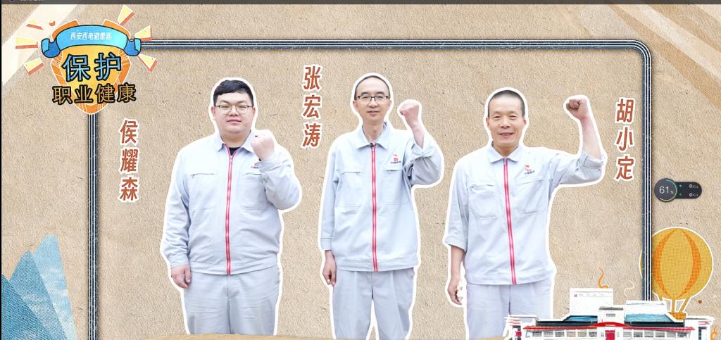 我公司申报的作品《职业健康 你我同行》,突出日常工作场所的职业卫生和职业健康保护知识传播,通过三秦工匠胡小定、西安市劳模张宏涛和公司优秀青年职工侯耀森的正反角度演绎,生动清晰的向大家讲解宣传了日常工作场所保护颈椎腰椎、工作间隙活动身体、特定工作场所佩戴安全帽防护噪音等职业健康防护知识。内景还原模式下有序整洁的办公室和职工餐厅、明媚春光下绿草如茵、树枝摇曳的厂区环境等随着三位职工的表演一起呈现,有很强的趣味性、科普性和观赏性。