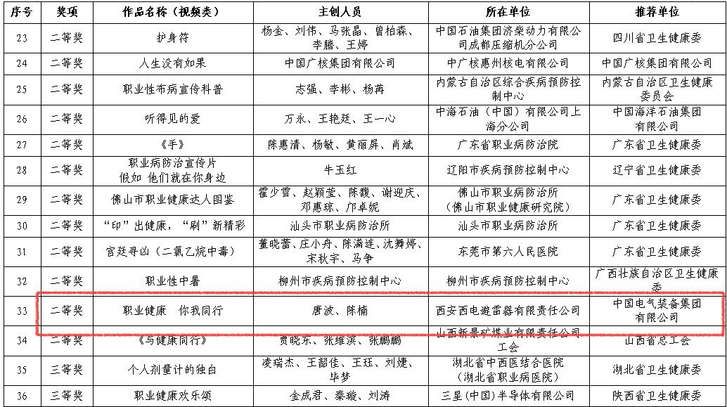 近日,国家卫生健康委办公厅、全国总工会办公厅公布了第三届职业健康传播作品征集活动评选结果,我公司创作拍摄的作品《职业健康 你我同行》荣获视频类作品二等奖。